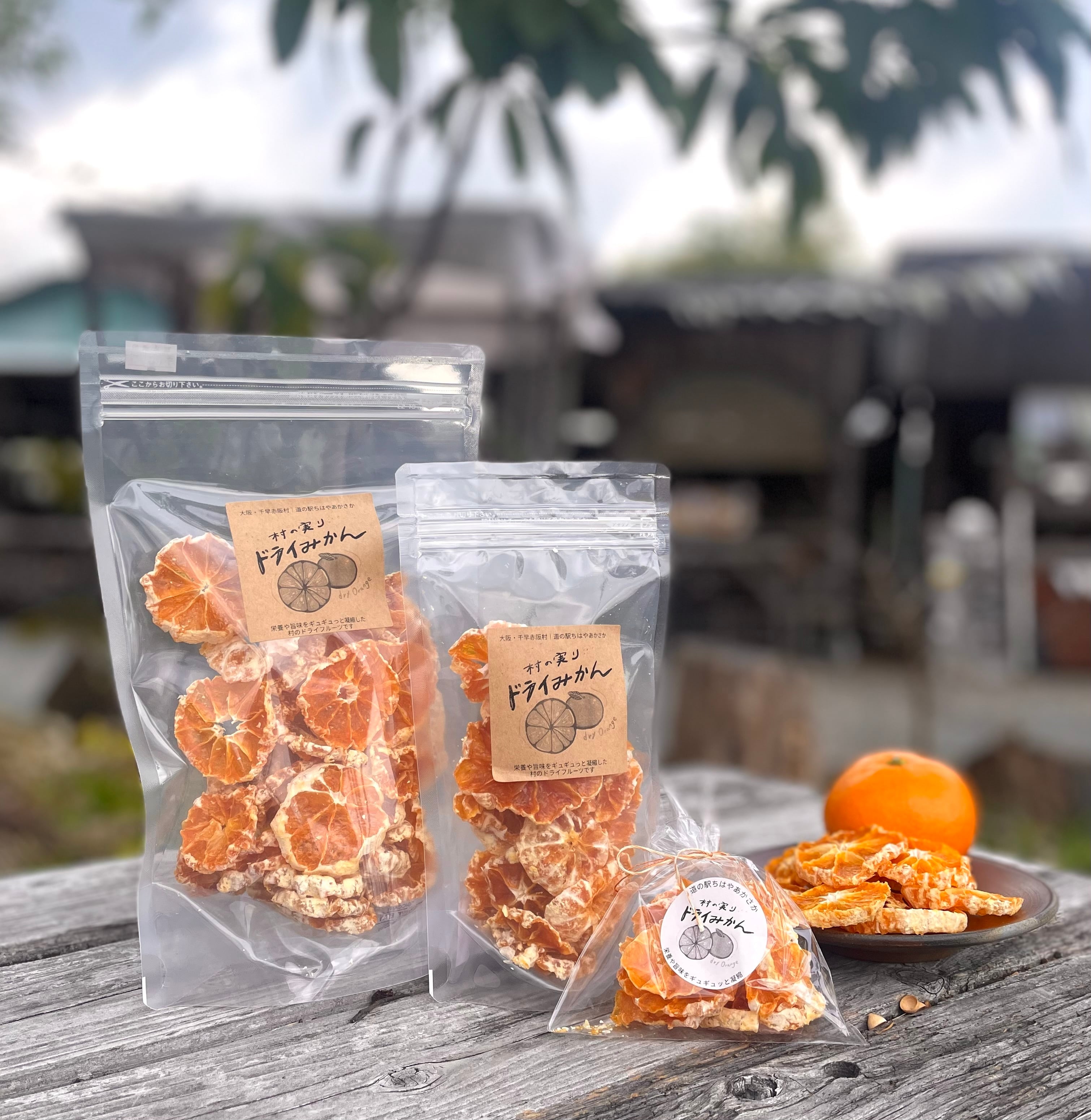 村のみかん畑で赤く熟したみかんをドライフルーツにしました。